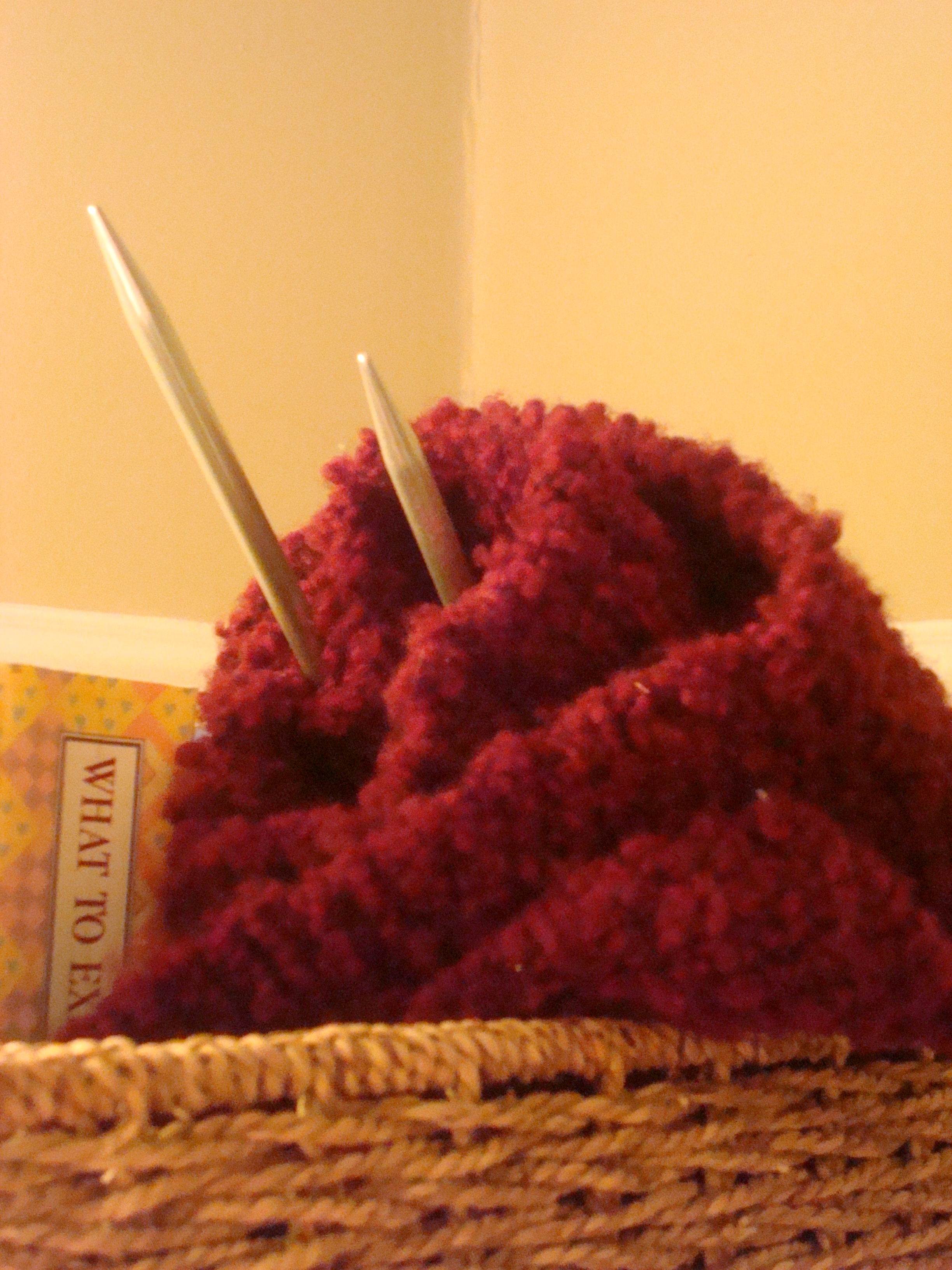 Ever year when the warm weather turns cool, my thoughts turn to a certain fuzzy little maroon scarf sitting in a trunk in our guest room. That might seem like an odd place to keep your scarves, and it is—unless yours are like mine; unfinished.